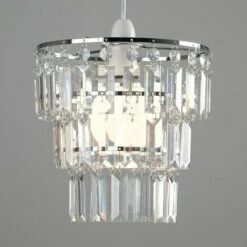 MINISUN 2 X Chandelier Ceiling Pendant Light Shades With Clear Acrylic Jewel Droplets – No Bulbs