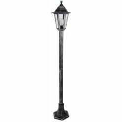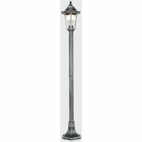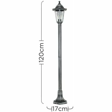 This vintage Victorian traditional style single outdoor bollard and lantern top lamp post light will make a classy statement in any garden. Made from durable weather resistant black and silver plastic this post is perfect for lighting up any garden courtyard or driveway. IP44 weatherproof rated so ideal for outdoor use.