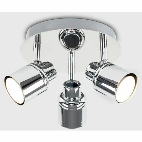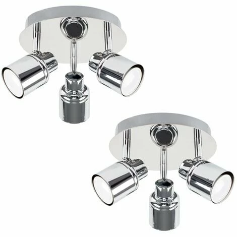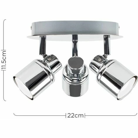 Pair of GU10 3 way round spotlights. Polished chrome finish with polished chrome spotlight heads. Adjustable heads enabling you to direct the light where it is required. GU10 halogen bulbs are not supplied. Spotlights are a great way to bring additional illumination into a room. The adjustable heads enable you to direct the light source to exactly where you want it.
