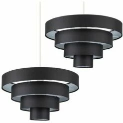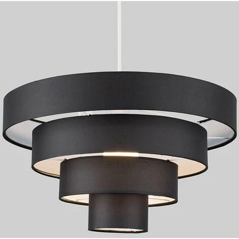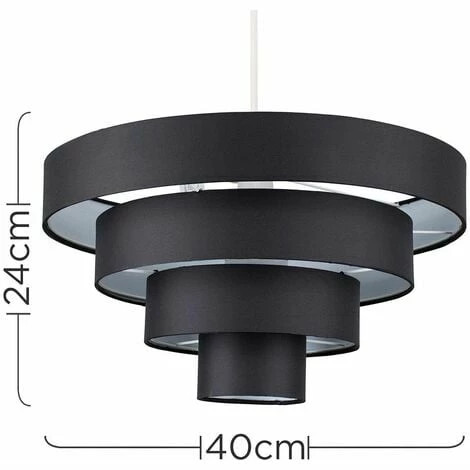 These fantastic black ceiling shades are perfect as a low cost way to dress up an existing ceiling fitting. The easy fit shade just screws directly onto the ceiling fitting and instantly changes a room in a matter of seconds – no electrical installation required. The shades in black fabric allows the light to be dispersed throughout the room evenly. The ideal bulb for this product is a 60w BC B22 GLS bulb (each) – not supplied.