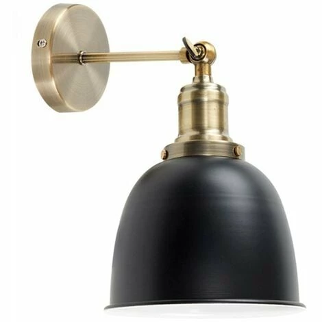 A pair of retro style wall light fittings in an antique brass finish complete with satin black metal dome shaped shades. These wall lights features a knuckle joint that allows you to adjust the angle of the lamp into your desired position. Wall lights are a great way to bring additional lighting to a room and are particularly useful to illuminate a dull alcove.