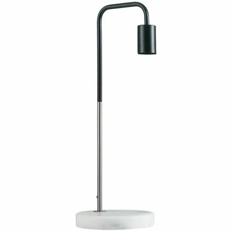 Pair of retro style metal rod frame table lamps in a matt black and chrome finish with a white solid marble base. These lamps are constructed from high quality materials and the marble base makes this lamp extremely sturdy. This contemporary table lamp is guaranteed to make a statement in any home. A squirrel cage bulb is recommended with this lamp.