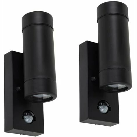 These modern outdoor wall lanterns in a matt black plastic finish are an ideal product to help create a warm and inviting glow to doorways porches and external walls. As well as being IP44 rated which is fully certified for outdoor installation this external light also features a practical integrated PIR motion detector – providing extra security for the home.