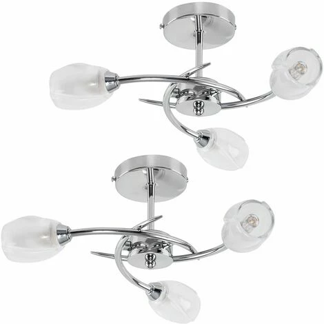 Modern 3 way curved arm ceiling lights in a chrome finish with frosted glass shades.