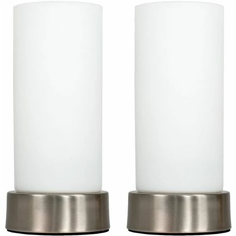 These fantastic glass table lamps in brilliant chrome finish are a wonderful addition to any contemporary home. The frosted glass shades allow the light to be dispersed throughout the room without the light becoming too harsh.