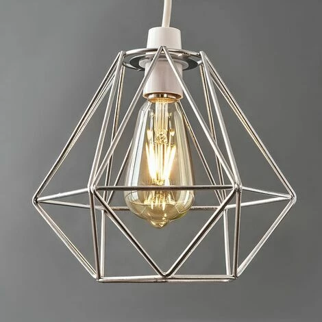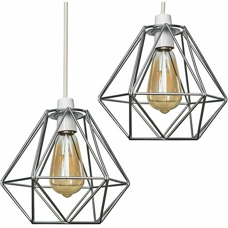Pair of retro style metal ceiling pendant light shades in a silver chrome finish. Features an open design which shades the bulb whilst allowing light to disperse effectively and evenly throughout the room.