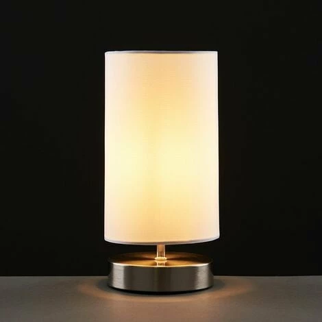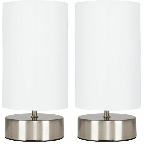 These fantastic modern touch table lamps with stunning brushed chrome sturdy bases are a wonderful addition to any contemporary home and any bedroom lounge hallway living room or office. The white polycotton shade allows the light to be dispersed evenly throughout the room. Simply touch the metal base to turn it on. The light can be set to 4 stages off a low level light for mood lighting a medium level light for general lighting and a high level light which is the brightest setting to create an intense pool of light. Practical and perfect for homework writing bedside reading desk studying hobbies crafts or simply illuminating a corner. Please Note This lamp requires dimmable bulbs. Not suitable for standard LED or energy saving bulbs.