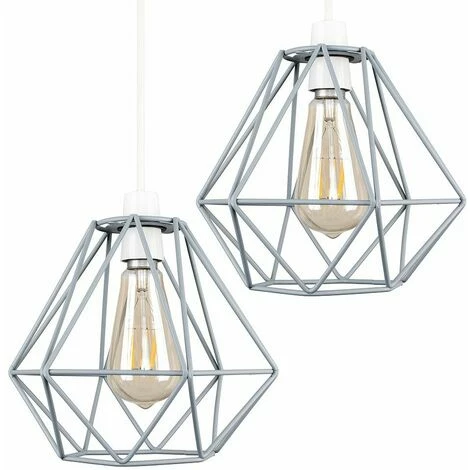 Pair of retro style metal ceiling pendant light shades in a grey finish. Features an open design which shades the bulb whilst allowing light to disperse effectively and evenly throughout the room.