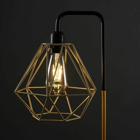 Pair of retro style metal rod frame table lamps in a matt black and gold effect finish with a white solid marble base. These lamps are constructed from high quality materials and the marble base makes these lamps extremely sturdy. These contemporary table lamp is guaranteed to make a statement in any home+ gold effect metal cage shades which features an open design which allows the light to disperse effectively and evenly throughout the room.