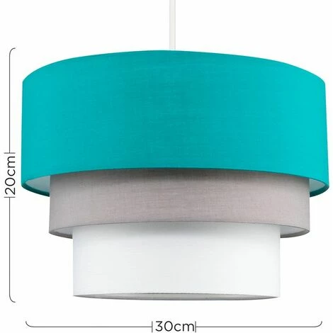 This pair of 3 tier ceiling shades are perfect as a low cost way to dress up an existing ceiling fitting. The shade in turquoise teal grey and white fabric allows the light to be dispersed throughout the room evenly. Perfect for bedrooms living rooms hallways lounges and landings.