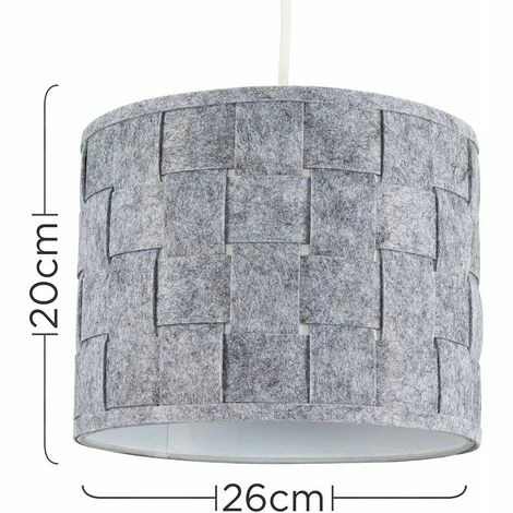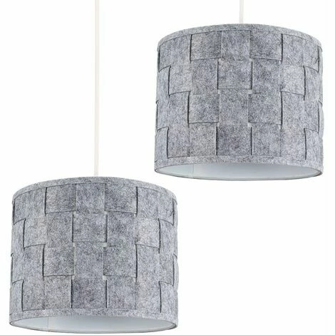 Pair of small modern weave design cylinder shades in a grey felt finish. These shades can double up as either a ceiling pendant light shade or table lampshade. Easily fits to your standard ceiling light socket – no wiring necessary! Perfect for bedrooms living rooms hallways lounges and landings. Please note these shades come flat packed and requires self assembly.