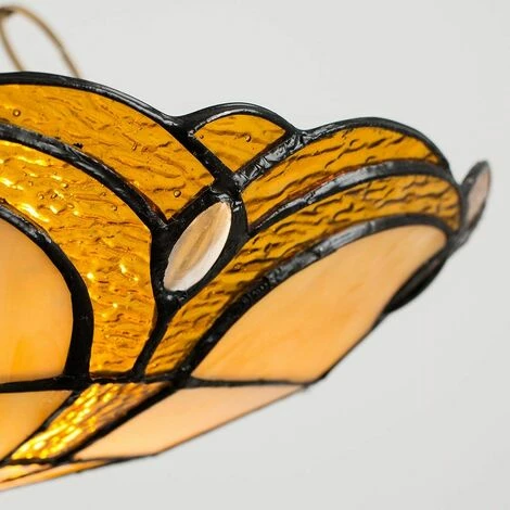 Pair of Tiffany style jewelled uplighter ceiling pendant light shades in an amber stained glass finish. Ideal for use in living rooms dining rooms hallways bedrooms and more.