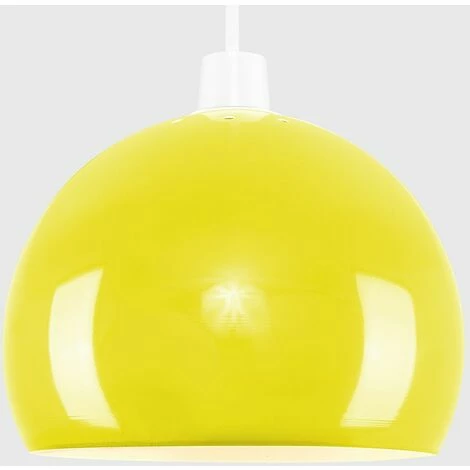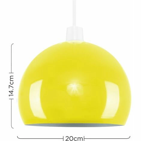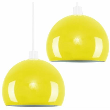Pair of retro style ceiling pendant light shades in gloss yellow metal finish. Easily fits to your standard light socket in a matter of seconds – no electrical installation/wiring required.