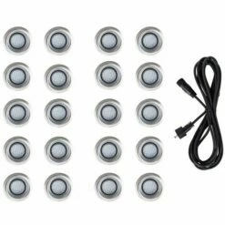 Complete Stainless Steel Decking / Plinth Lights Kit. Includes all bulbs cables and connections. Update your garden with these fantastic lights. These blue LED’s light up your decking beautifully. IP67 outdoor rating. This kit contains 20 x 40mm LED decking lights (1.5m of cable between each light). 1 x 12V IP20 transformer with 3 pin plug for indoor connection to mains power. 5m cable from transformer to first light. Supplied with a 3M extension cable. A maximum of 3 x 3M extension cables can be used per decking light kit.