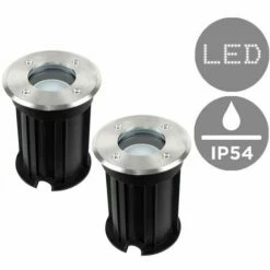 Pack of 2 Modern walkover outdoor lights in a brushed chrome finish. These ground lights are designed to lighten up and decorate your garden it can be used to illuminate a focal point in your garden and or provide lighting to a walkway. These fixtures are waterproof (IP54 Rated) making it a great solution for outdoor lighting. Includes a 300mm cable.