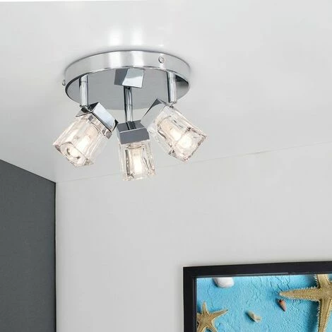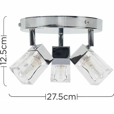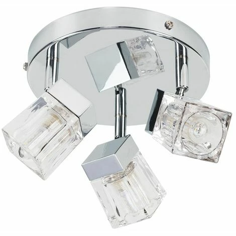 The right fitting can make a real style statement and complete your living space look. Stunning modern 3 way halogen bathroom ceiling light spotlight. Silver chrome finish with glass ice cube shades. The glass shades cast a subtle beautiful light across the room once lit.