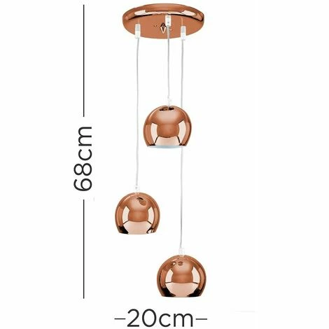 Retro 3 way droplet ceiling light fitting in a copper finish. This stylish light is perfect for any room of your home. Includes 4W LED bulbs.