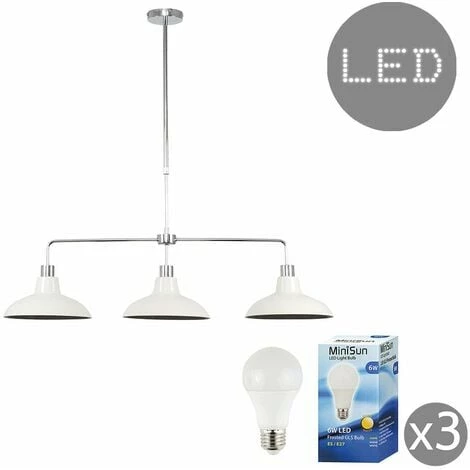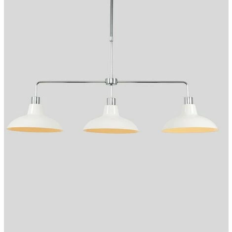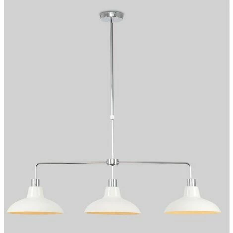 Contemporary 3 way ceiling pendant in a polished chrome finish. Available with our retro style shades in a variety of colours . Ideal for use over kitchen islands or as a lounge fitting.
