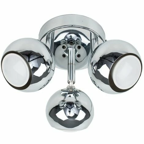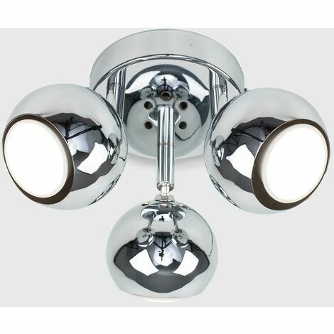 Beautiful retro style 3 way round plate eyeball spotlight in a polished chrome finish. Update your ceiling fitting with this stunning light. Each spotlight head is fully adjustable allowing you to direct the light source to exactly where you want it. This unique light will make a real style statement and complete your living space look. Ideal for dining rooms kitchens and other living areas.