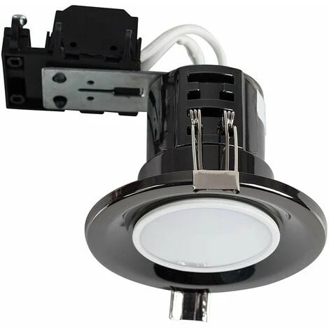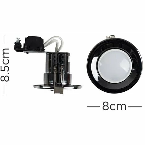 30 Quality MiniSun Fire Rated GU10s in a black chrome finish. Features 90 minute fire rating and comes complete with terminal block and pre-fitted spring clips. Supplied with product guidelines and full fitting instructions. Suitable for use with regular halogen or LED GU10 bulbs. Complies with BS EN60598 BS5250 BS476 Parts 20 21 & 23. 90 Minutes Protection Against The Spread Of Fire. 30 x 50w GU10 Bulbs Required Not Supplied