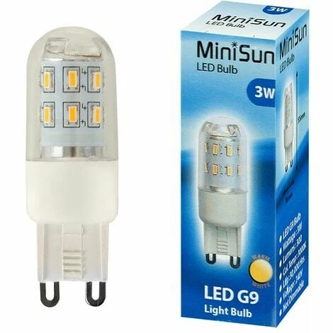 High quality MiniSun branded 3w G9 LED light bulb. Energy Saving – Only 3w! Colour Temperature 3000K Warm White colour rating. 300 Lumens. All MiniSun bulbs are quality tested to ensure maximum life and reliability. Use of different types and finishes of bulb can dramatically alter the mood and atmosphere providing bright light in working areas and soft tones in areas of relaxation. Please ensure that the bulb does not exceed the maximum wattage recommended for your light fitting.