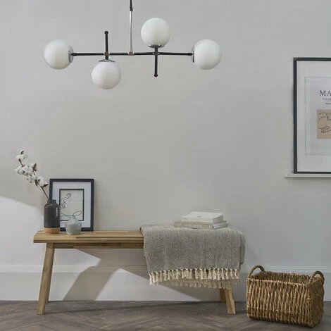 This MiniSun ceiling bar light fitting comes in a matt black metal finish with four glass globe shades. Perfect for adding an industiral style to any room in your home.