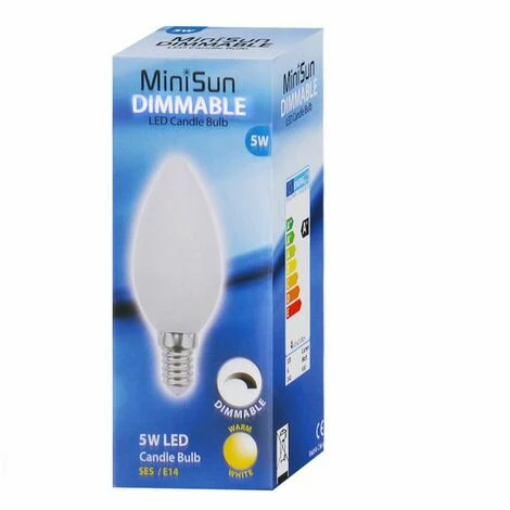 Pack of 4 – MiniSun branded high power dimmable LED frosted opal thermal plastic candle bulbs. These top quality bulbs utilise the latest in LED lighting technology. They are not only ultra energy saving (only 5W) but they give approximately equivalent light output to 40W standard bulbs! These MiniSun branded LED bulbs are manufactured to the highest possible standards with 400 lumens. The bulbs are a low cost item to run using only 4 watts of power and have a 20000 hour lifetime rating which will save you a substantial amount of money over that duration. Due to the high quality LED chips used the colour 3000K (Warm White) will never differ or gradually fade. LED Technology is developing so rapidly we fly these in from the Far East to ensure you get the very latest specification. Ideal for use in kitchens dining rooms hallways living rooms hallways bedrooms and more! MiniSun LED’s allow you to choose the right lighting effect whilst cutting maintenance costs power consumptio