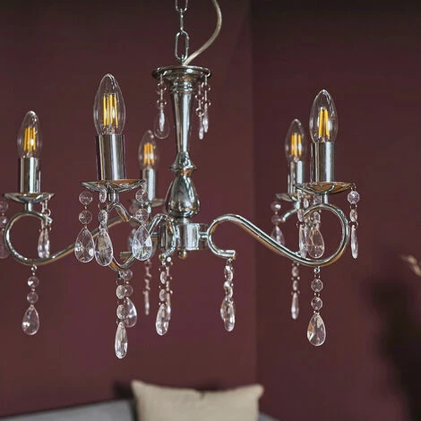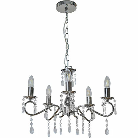 This beautifully made classic five-way ceiling light chandelier features light reflecting acrylic jewel droplets. Ideal for lounges dining rooms bedrooms and hallways and come complete with fixing pack and instructions ready for installation in your home.