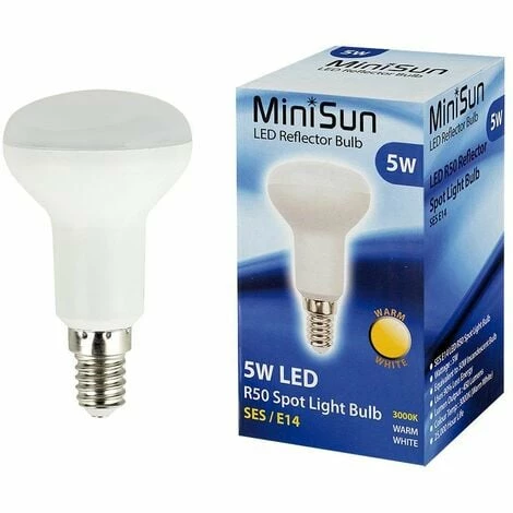 These superb quality light bulbs are constructed from the latest state-of-the-art thermal plastics and finished with a frosted cover for a greatly improved appearance when compared to many other LED R50 spotlight bulbs. The quality of light combined with industry leading output (450 lumens) makes these an ideal replacement for your old R50 Spot Light Bulbs.