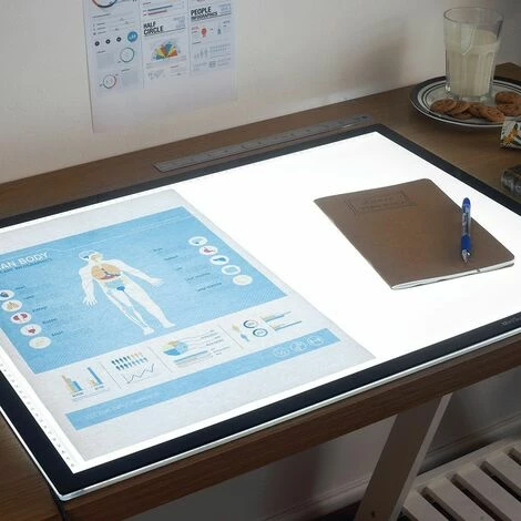 Professional quality MiniSun A2 LightPad utilising the latest in state of the art LED technology. This allows for both an ultra-slim profile (only 8mm) and a bright even spread of high quality light. Features an integral printed ruler guides and document clips to secure your work. Ideal for a wide variety of tasks including arts crafts design drawing stencilling tattoo photo work calligraphy displaying slides and transparencies transferring designs to fabric copying designs and viewing photographic negatives – a powerful tool with many uses. This high quality product is great for everyone from enthusiastic amateurs to professionals. A craft LightPad is also an ideal way to introduce children to drawing and sketching. Note we also have larger A4 and A3 LightPad’s available in our shop.