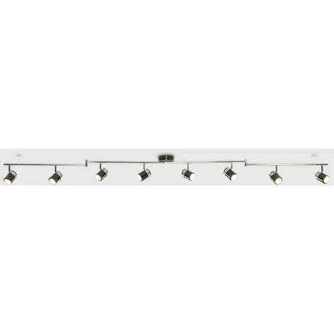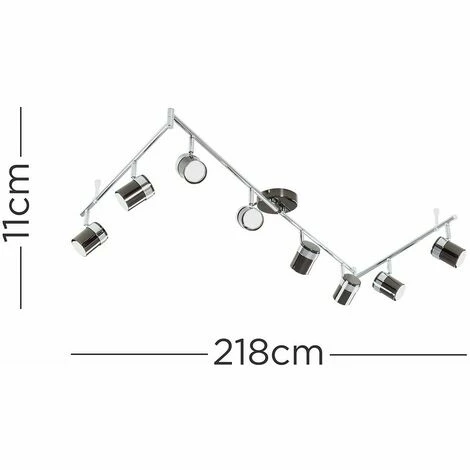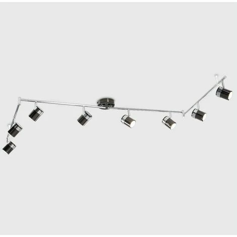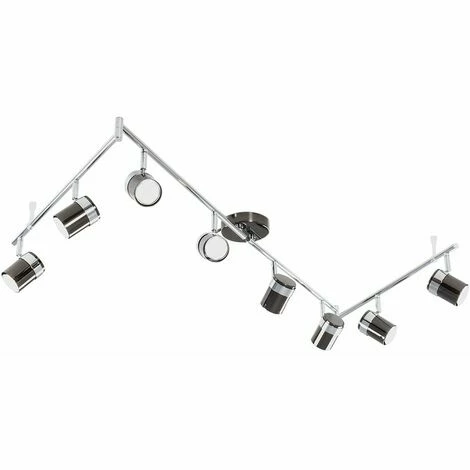 Modern flexi ‘Z’ shaped 8 way spotlight in a black chrome and silver chrome finish. The ‘Z’ shaped bar and positions of the bulbs allows the light to be dispersed evenly. The spotlights can also be individually angled to any position enabling the light to be emitted where it is required. Spotlights can be used as general lighting or to highlight features. Ideal for kitchens hallways dining rooms and other living areas.