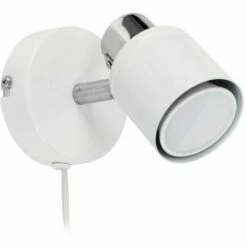 A wonderful and practical wall / ceiling spotlight which would be a handy addition to bedrooms living rooms lounges and kitchens. This elegant white and chrome lamp light is equipped with a cable plug and on/off switch meaning that there is no need for annoying wiring hiring an electrician or fiddly DIY. Simply plug into the mains once fixed to the wall and enjoy! Ideal as an alternative for bedside / desk lamps living room reading writing and craft lights and viewing recipes in the kitchen with ease. The adjustable heads enable you to direct the light source to exactly where you want it. Warm White Energy Saving Long Life GU10 LED Bulb Supplied