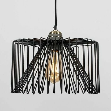 Modern ceiling rose & lamp holder set in an antique brass metal finish which features a high quality braided flex. Complete with a black cylinder shaped wire design light shade. Ideal for lounges dining rooms kitchens and other areas within the home. Please note the flex can be shortened if required.