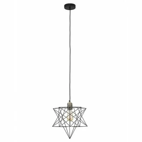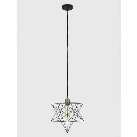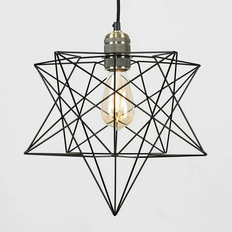 Modern ceiling rose & lamp holder set in an antique brass metal finish which features a high quality braided flex. Comes complete with a matt black geometric wire star design shade. The shade has an open design which shades the bulb whilst allowing light to disperse effectively and evenly throughout the room. Please note the flex can be shortened if required.