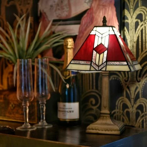 We have a collection of Tiffany style lighting including this fantastic contemporary Aztec Tiffany table lamp. This Tiffany table lamp with heavy bronze effect base is finished with a genuine hand made stained glass shade. The ideal bulb to use with this product is 1 x 40w SES golfball bulbs. Please note the washers are NOT supplied with this item.