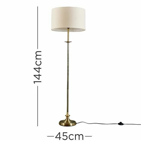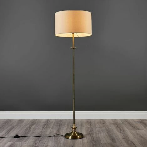 This MiniSun floor lamp comes in an antique brass finish and features a traditional design base. Complete with an extra large fabric drum lampshade. Floor lamps are a great way to bring additional lighting to a room – perfect for hallways bedrooms lounges and living rooms.