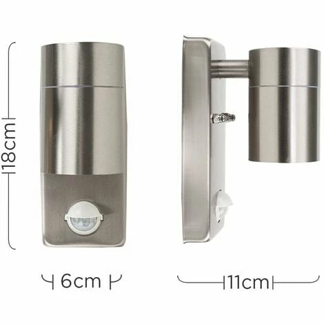 This modern outdoor wall lantern is an ideal product to help create a warm and inviting glow to doorways porches and external walls. Features PIR motion sensor detector technology. This lantern is a stylish way to add security to your home as well as outdoor decorative lighting. Lighting emits from the bottom of the lantern.