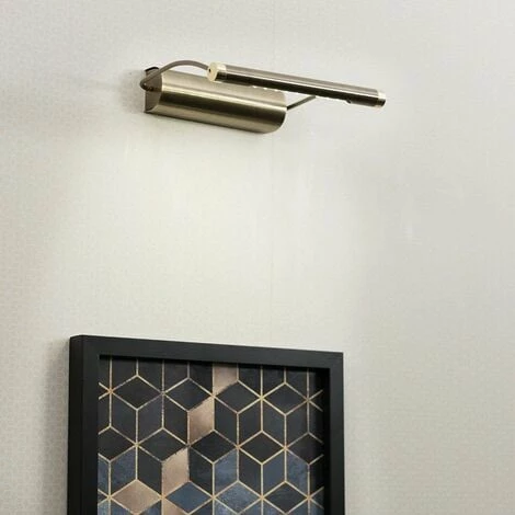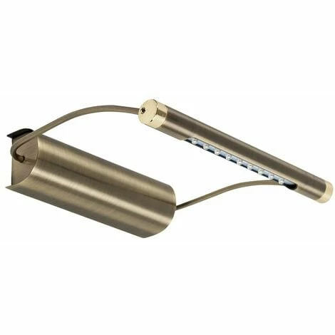 This battery powered picture wall light comes in an antique brass finish. It features 9 LED lights that give out a warm white glow (4000K). It simply fixes to your wall and is controlled with an integrated push switch. Requires 3 x AA batteries (not included).