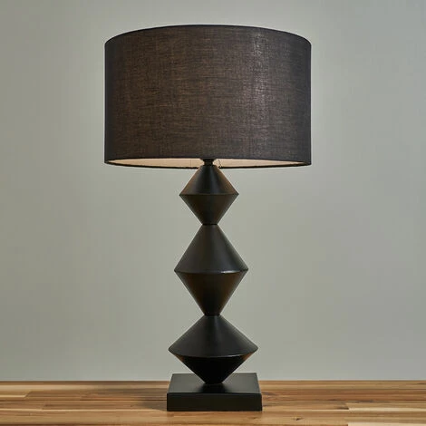 This MiniSun diamond design table lamp comes in a black finish. Complete with an in-line on/off switch for easy use. Paired with a fabric tapered shade. Ideal for living rooms dinig rooms bedrooms and other living areas.