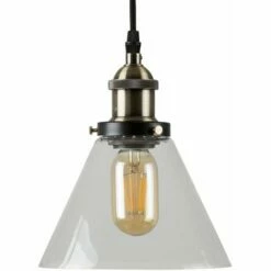 Modern ceiling pendant light shade in a stunning combination of black and gold vintage dropdown and clear glass shade. This stylish light fitting looks great either on it own or in a series of two or more. Ideal for living rooms bedrooms dining rooms and hallways. 1 x Retro Style 4w LED Filament ES E27 Radio Valve Amber Tubular Light Bulb Supplied