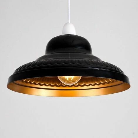 Magnificent Victorian pantry effect traditional ceiling lampshade. This modern ceiling light comes in a stunning gloss black finish with a satin gold interior giving this classic design a contemporary twist. Ideal for the lounge dining area bedrooms hallways and kitchen. Simply fits to an existing ceiling cord so no electrician required!