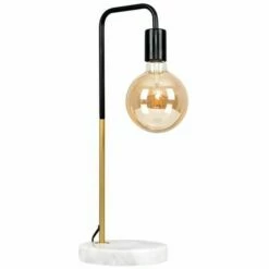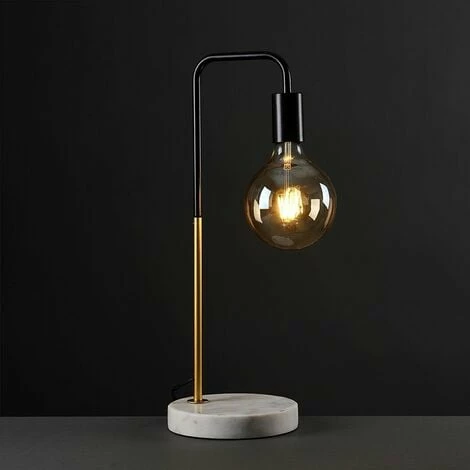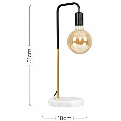 Retro style metal rod frame table lamp in a matt black and gold effect finish with a white solid marble base. This lamp is constructed from high quality materials and the marble base makes this lamp extremely sturdy. This contemporary table lamp is guaranteed to make a statement in any home.