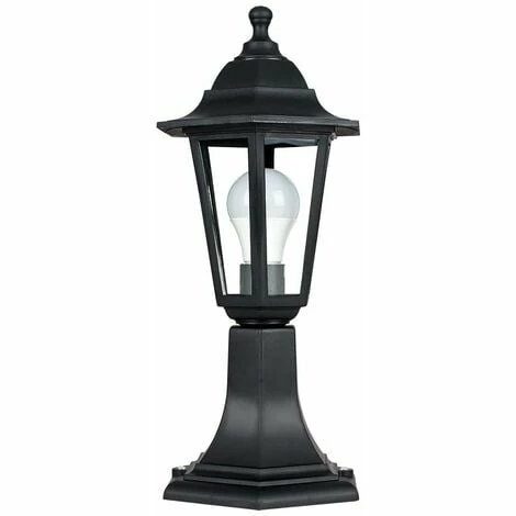 Vintage style single outdoor post top lantern light makes a statement in any garden. Black Plastic. Made from durable weather resistant plastic this post is perfect for lighting up any garden courtyard or driveway. Requires 1 x ES E27 (Edison screw) bulb – not supplied.