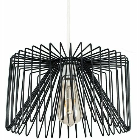 Modern wire design cylinder shaped ceiling pendant light shade in a black metal finish. Features an open design which shades the bulb whilst allowing light to disperse effectively and evenly throughout the room. This light shade will make a real style statement and complete your living space look. Easily fits to your existing lamp holder in a matter of seconds – no electrical installation required. A non electric ceiling pendant shade is a quick and economical way to update your room in seconds! Ideal for use in lounges hallways bedrooms and other living areas