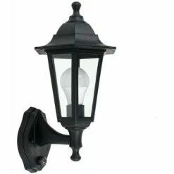 Beautiful traditional style outdoor wall light made from durable weather resistant plastic. Fitted with an unobtrusive state-of-the-art PIR motion sensor which triggers the light when movement is detected. An ideal product to help create a warm and inviting glow to doorways porches and external walls. IP44 Rated. Complete With 1 x 6w LED ES E27 SMD GLS Energy Saving Long Life Bulb