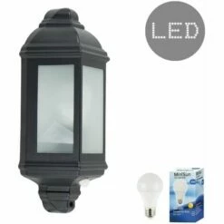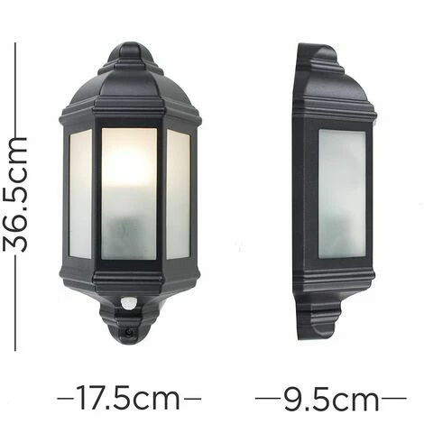 This stylish wall mounted 4-panel outdoor light has a stunning traditional Victorian lantern design and is ideal for lighting gardens paths garages patios courtyards decorative porches and driveways. The lantern also features a practical integrated PIR Motion Sensor with a 2m Detection Distance at a 1.5m Mounting Height – providing extra security for the home and peace of mind. The wall-mounted outdoor flush light comes in a sturdy and weatherproof durable aluminium design with a matt black finish and period elegant frosted glass panes. This robust illuminating external light is IP44 Rated and is fully certified for outdoor installation. 6w LED ES E27 SMD GLS Energy Saving Long Life Bulb Supplied.