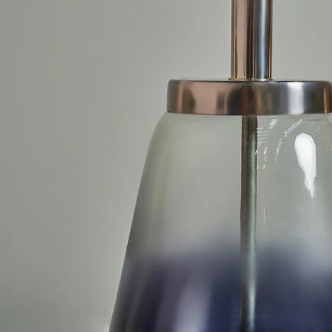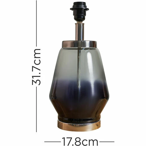 This MiniSun table lamp base comes in a chrome and blue lustre glass gloss finish. Complete with an in-line on/off switch for easy use. Simply pair with a shade of your choice to complete the look.
