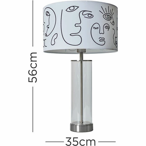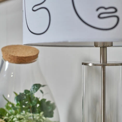This MiniSun table lamp comes in a brushed chrome finish with a clear tube design stem. Complete with a large fabric lampshade in a range of colour options to suit all decors. Featuring an in-line on/off rocker switch for easy use.