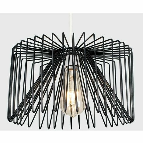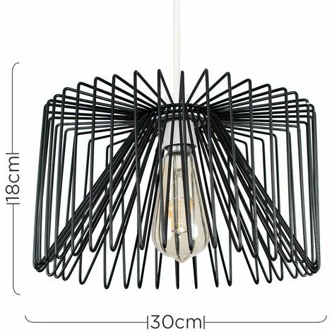 Modern wire design cylinder shaped ceiling pendant light shade in a black metal finish. Features an open design which shades the bulb whilst allowing light to disperse effectively and evenly throughout the room. This light shade will make a real style statement and complete your living space look. Easily fits to your existing lamp holder in a matter of seconds – no electrical installation required. A non electric ceiling pendant shade is a quick and economical way to update your room in seconds! Ideal for use in lounges hallways bedrooms and other living areasbrbrbThis item is a lampshade only and doesn’t come with electrical fittings/b