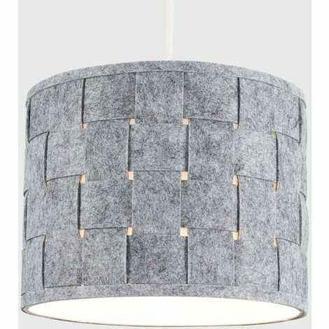 Small modern weave design cylinder shade in a grey felt finish. This shade can double up as either a ceiling pendant light shade or table lampshade. Easily fits to your standard ceiling light socket – no wiring necessary! Perfect for bedrooms living rooms hallways lounges and landings. Please note this shade comes flat packed and requires self assembly.